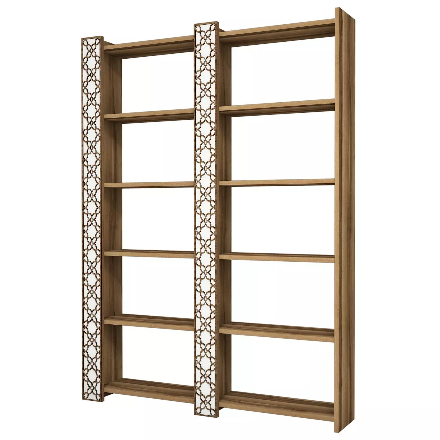 Walnut White Kirjahylly - 100% Melamiinipinnoitettu, 18mm Paksuus, 4mm CNC Relief, Muovijalat, 124,6x170x24,2cm