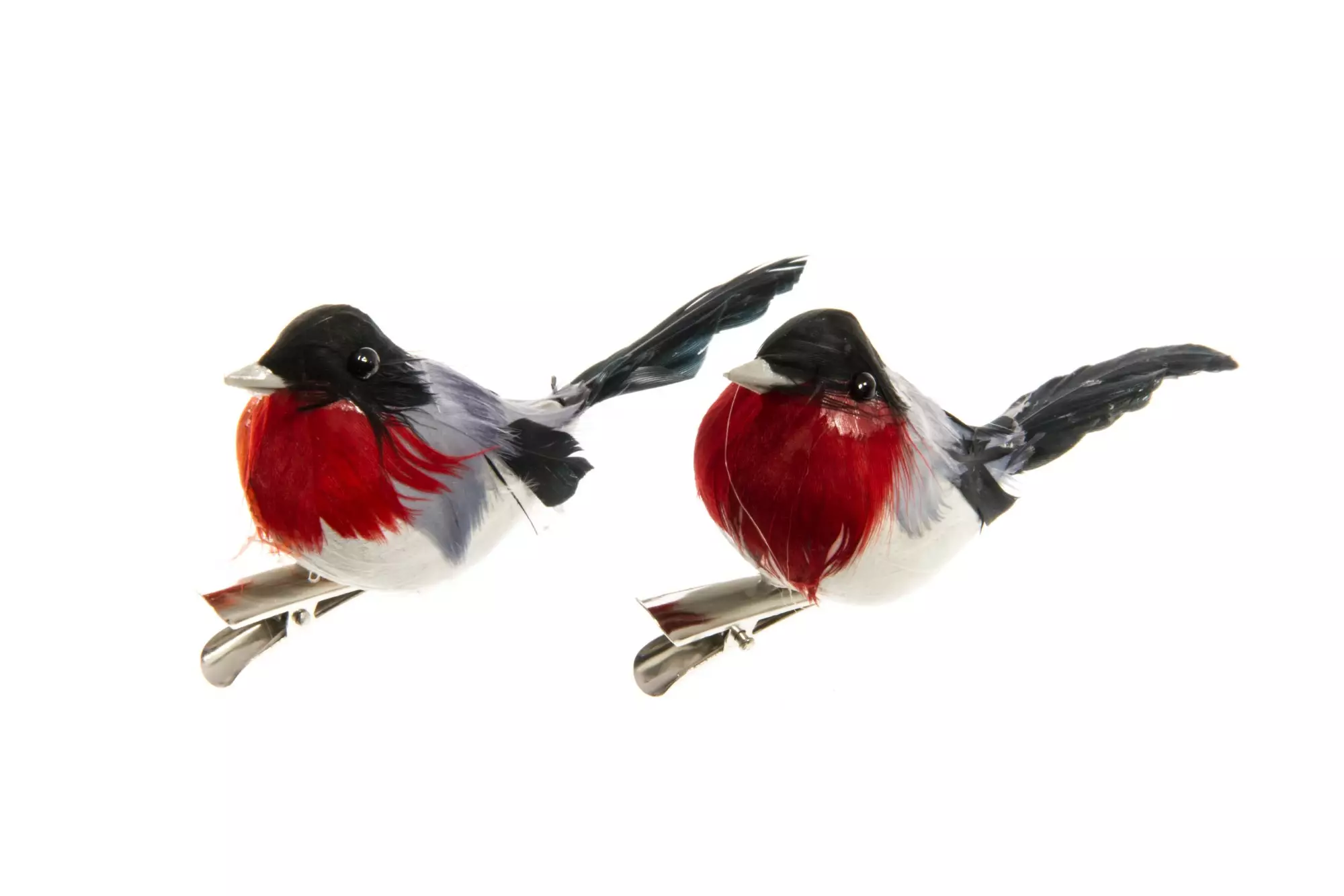 Perinteinen punatulkkukoriste, helppo kiinnittää klipsillä kuusenoksaan. Koko noin 10 cm. 2 kpl/pkt.