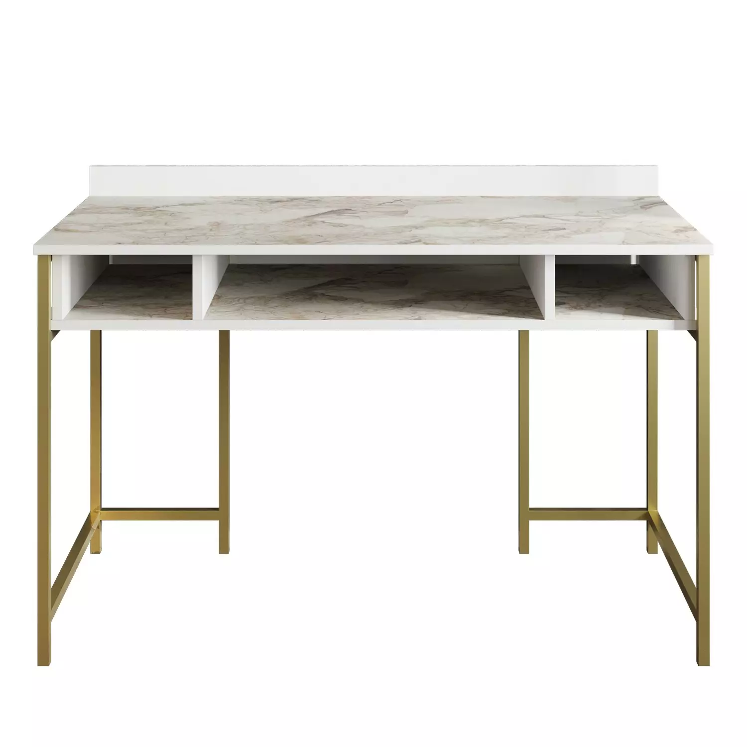 Ylellinen Kultavalkoinen Opiskelupöytä - 120x75x60 cm - 100% Melamiinipinnoitettu - Metallijalat - Lisäsäilytystila