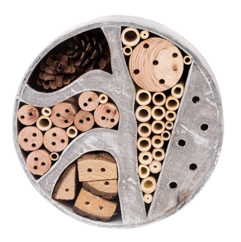 Pyöreä hyönteishotelli. Tarjoa pihan hyötyhyönteisille pesintätila ja turvallinen talvehtimismahdollisuus