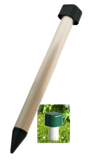 Käärmeenkarkotin häätää tehokkaasti käärmeet maassa tapahtuvan värähtelyn ansiosta. Käärmeet aistivat värähtelyn ja pysyvät poissa. Parhaan tuloksen saamiseksi suositeltavaa on asentaa 2 karkotinta 30 cm välein.