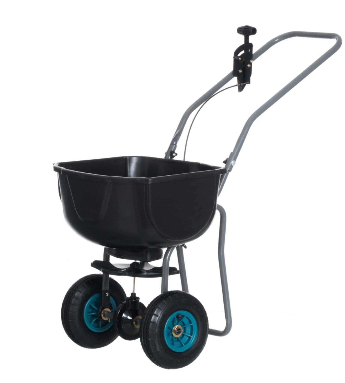 Tilavuus 25L. Työnnettävä levitin mm. lannoitteen, siementen ja jäänsulatussuolan levittämiseen. Pneumaattiset 8 tuuman renkaat. Ohjauskytkin, jossa on useita levitysasetuksia.