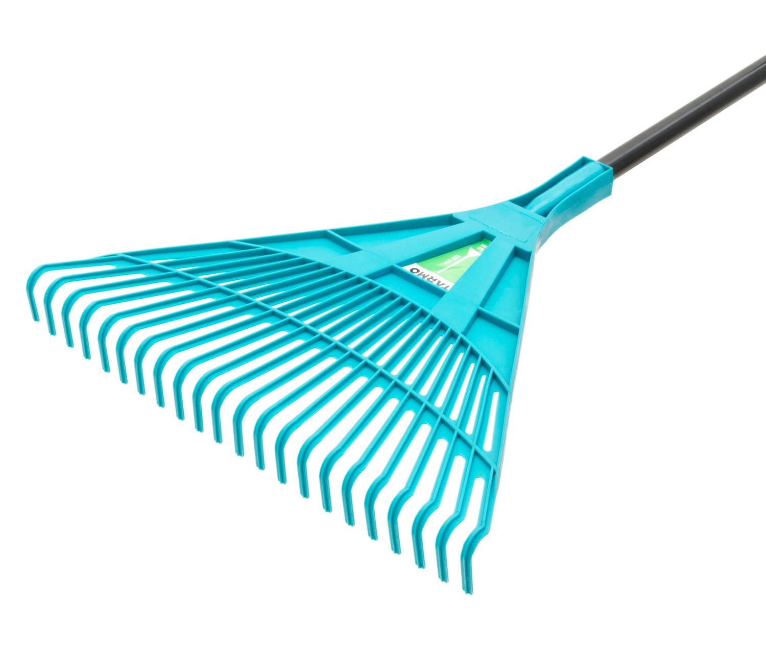 Ekstraleveä lehtiharava. 50 cm leveä 22-piikkinen muovilapa. 1,2 m pitkä teräsputkivarsi.