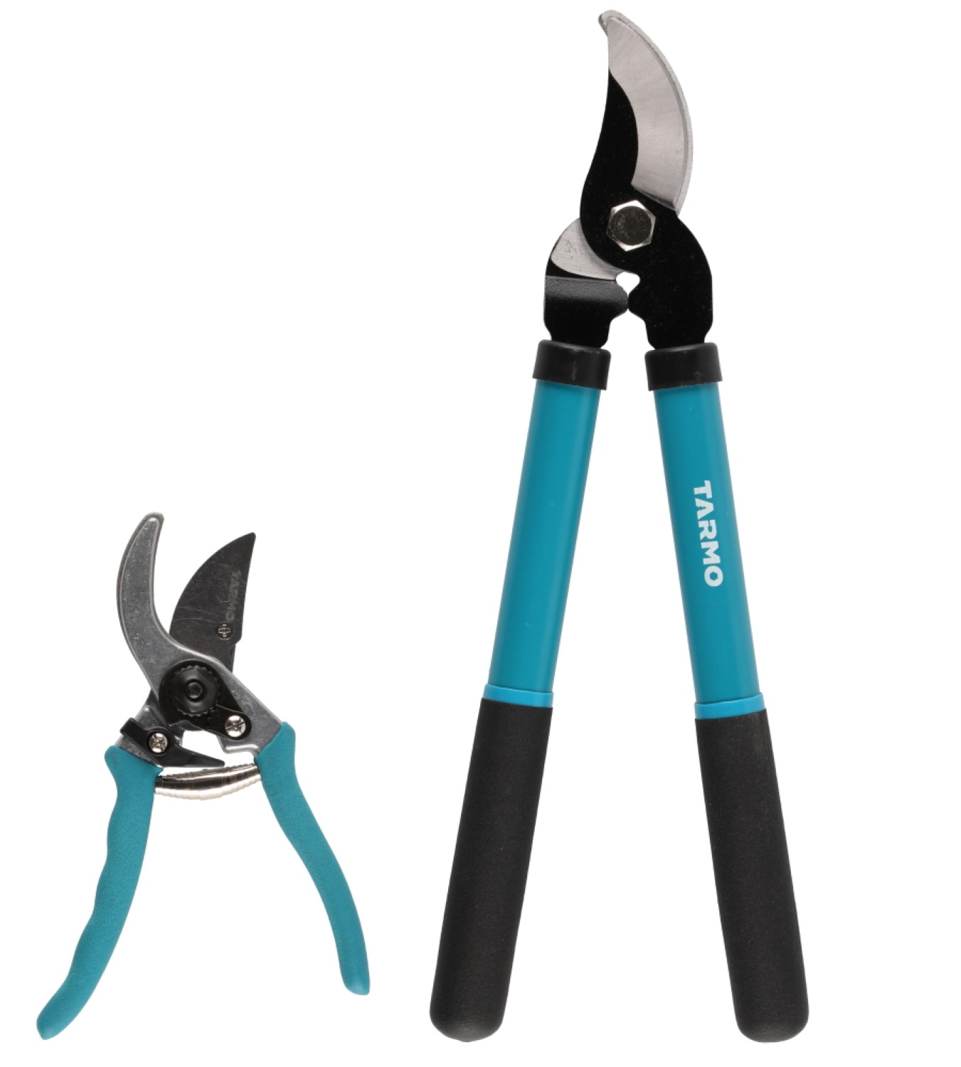 Isot sakset 16 x 38 x 2.5 cm. Pienet sakset 6 x 20 x 1,5 cm. Ohileikkaava malli, suunniteltu erityisesti tuoreiden oksien katkomiseen. Ergonominen kahva.