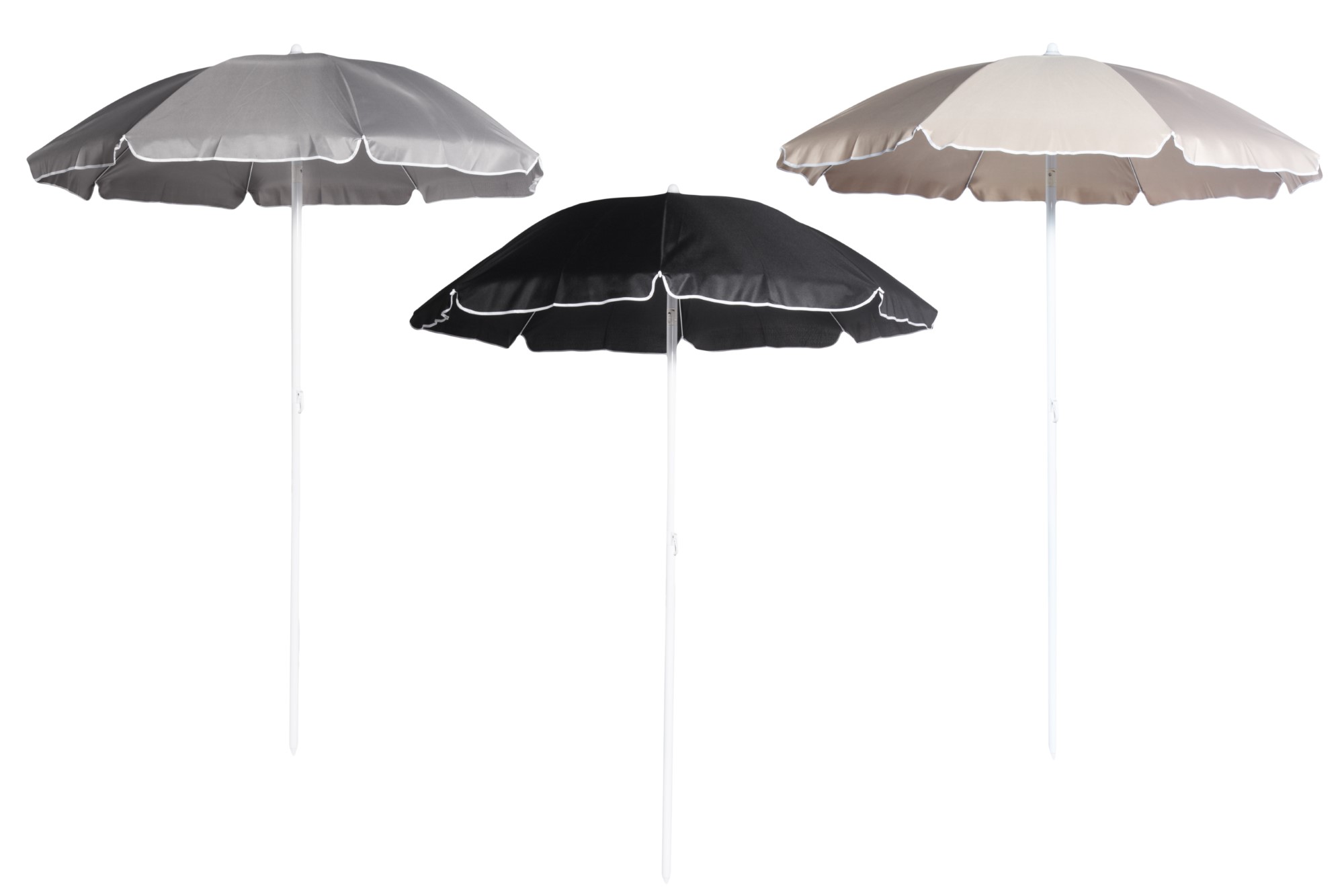 Tyylikäs päivänvarjo teräsrungolla. Päivänvarjossa on muovinen kallistusnivel ja teleskooppiosa, jotta varjo on helppo säätää mieluiseen asentoon. Mukana tulevan kantopussin avulla varjo on helppo pakata talveksi pois tai ottaa reissuihin mukaan.