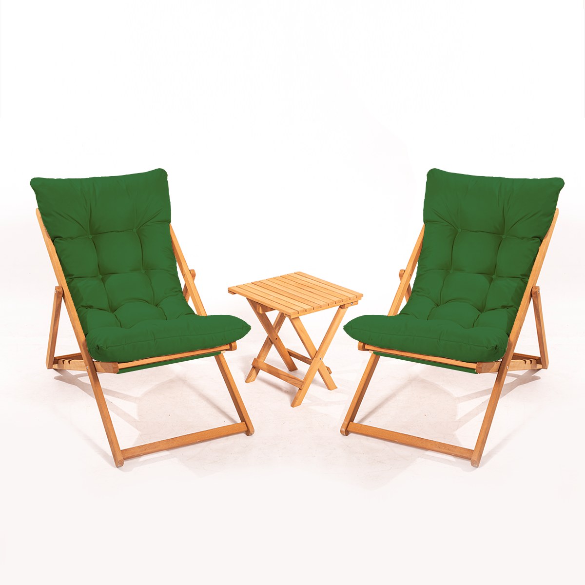 Puutarhapöytä ja tuolit 3-osainen setti - 100% pyökkipuuta, vihreä ja luonnollinen, vesipohjainen suoja, mukavat mitat