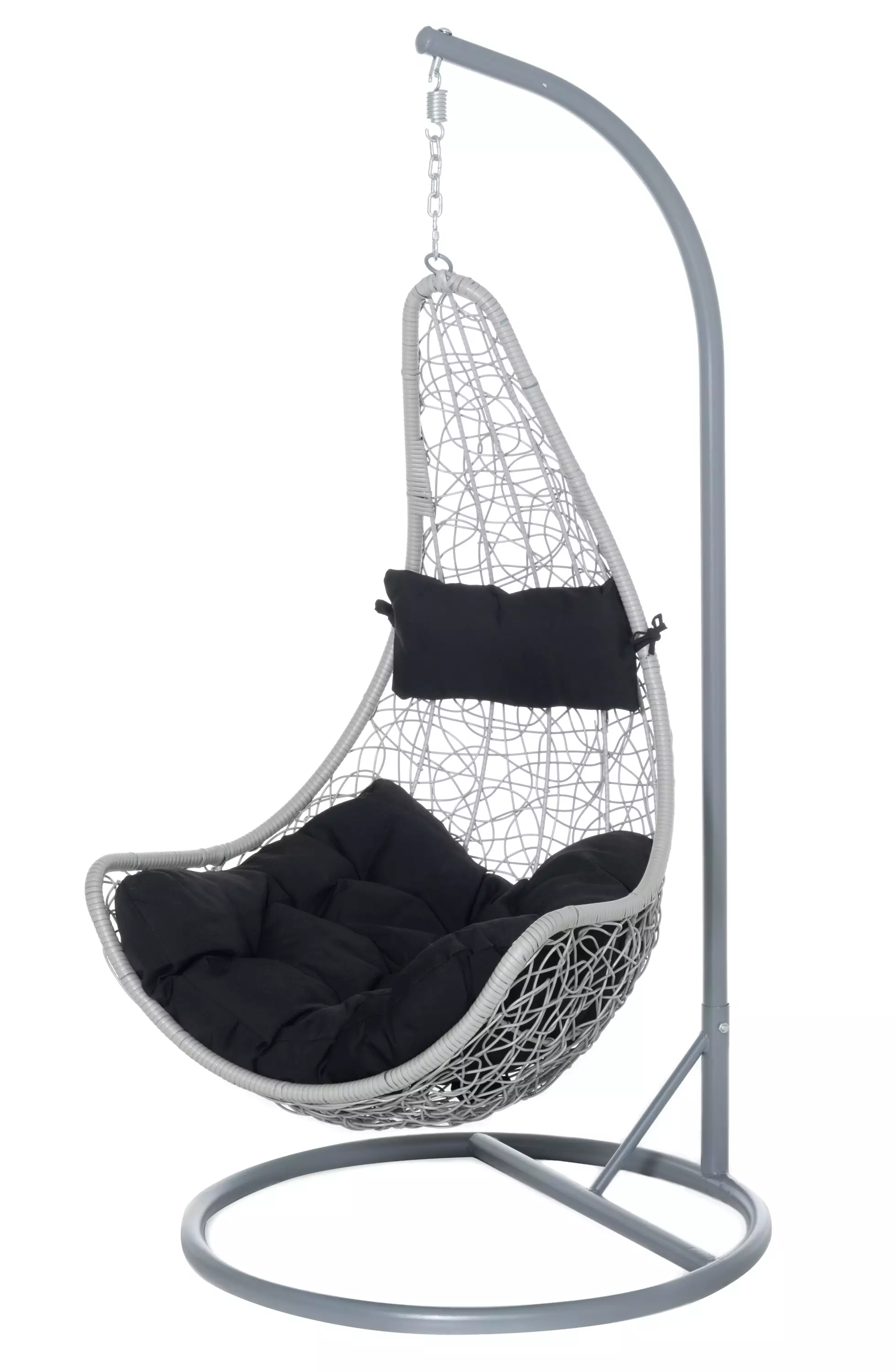 Päiväunipaikka josta kilpaillaan! Kuka pääsee ekana käpertymään tähän ihanaan polyronttinkituoliin lukemaan, nukkumaan ja nauttimaan kesän lempeistä tuulista tai viherhuoneen vehreydestä? Vahva teräsrunkoinen jalusta antaa vapauden sijoittaa tuolin minne tahansa tasaiselle alustalle - vaikka olohuoneeseen! Riippukeinulla ei ole jalkoja kuten perinteisellä kiikkustuolilla, joten varpaat, sormet ja hännät säästyvät vahingoilta.Mukana tulevat polyester-päällysteiset muhkeat pehmusteet sekä narukiinnitteinen niskatyyny tekevät tuolista vastustamattoman vapaahetken viettopaikan. Riipputuolin kantavuus on 130 kg, joten vuoroista kiistelevät lapset voi istuttaa kyytiin vaikka yhtäaikaa! Helppohoitoinen ja näyttävä polyrottinki kestää katseita, sadetta ja aurinkoa - pakkasella emme suosittele tuolia käyttämään, koska jäätyminen tekee materiaalista hetkellisesti alttiimman rasitukselle.