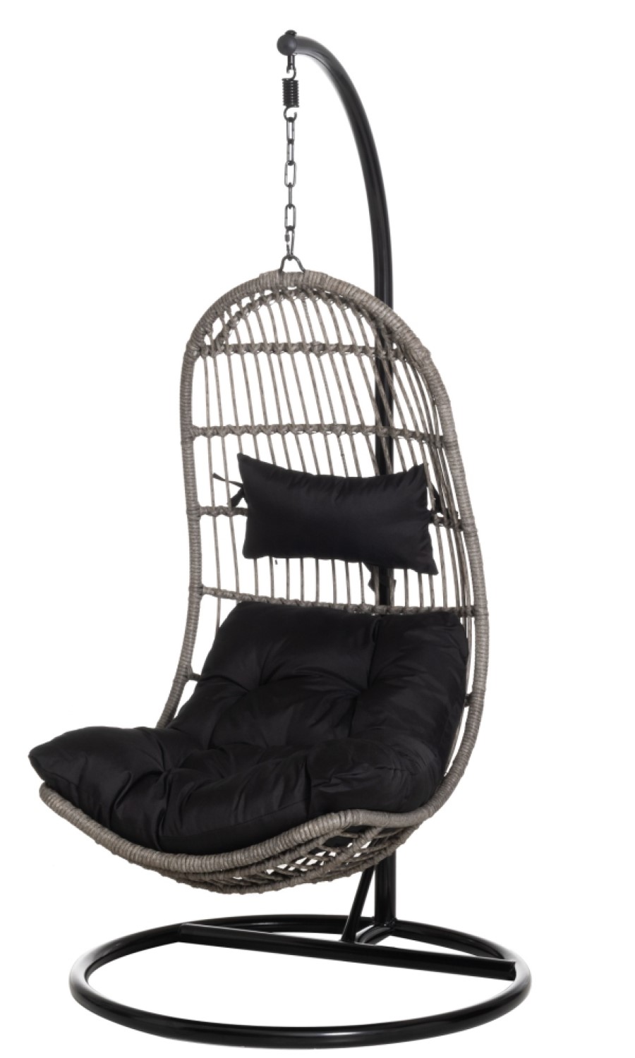 Muovirottinkipunoksesta valmistettu riipputuoli teräksisellä jalkaosalla. Mukaan kuuluu vedenkestävä istuintyyny sekä selkätyyny narukiinnityksellä. Enimmäiskantavuus 130 kg. Turvavyö koriosan ja varren välillä. Korin korkeus 115 cm, leveys 80 cm, syvyys 68 cm. Ripustimen korkeus 195 cm, jalustan leveys 98 cm.