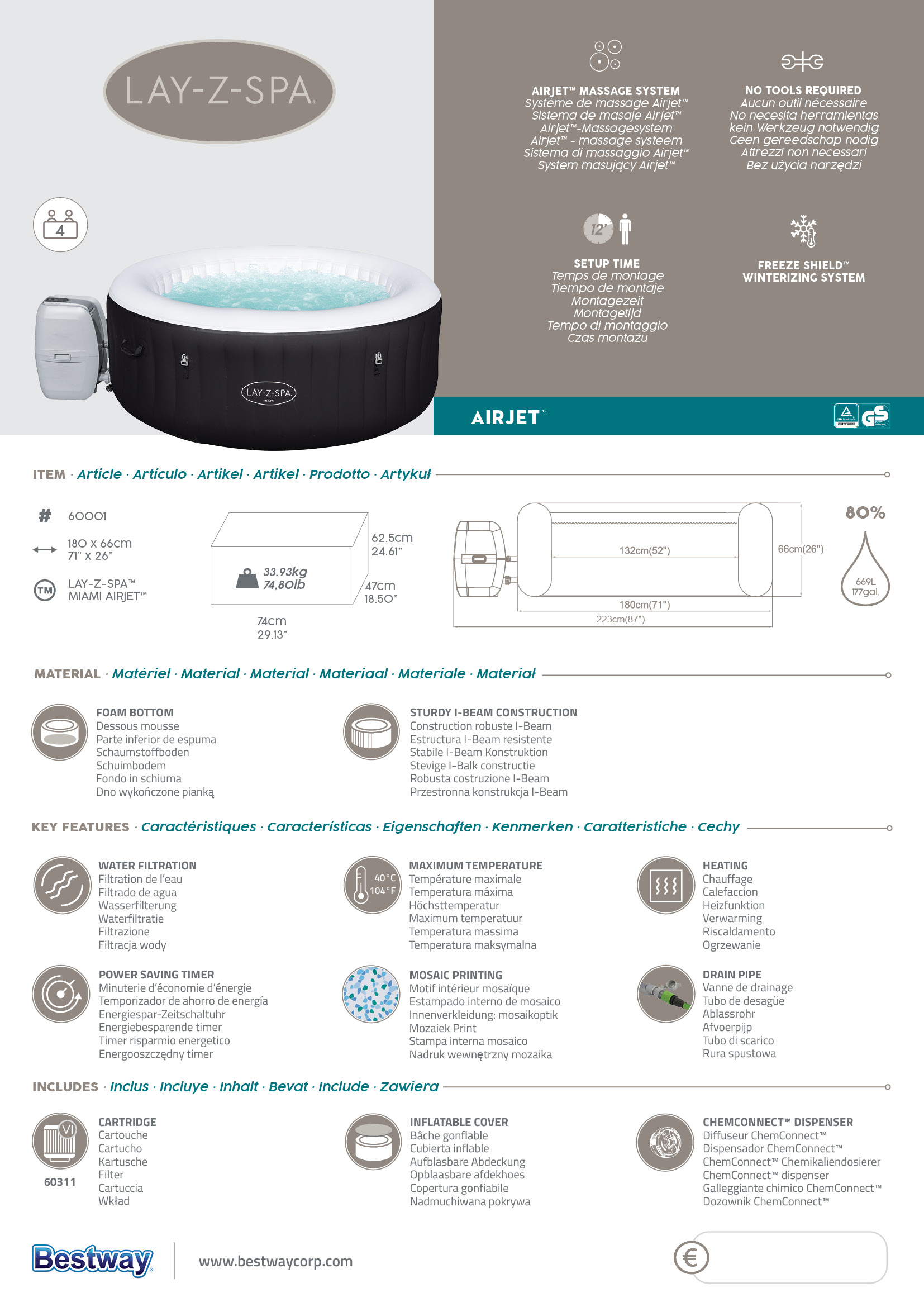 Maailman johtava ulkoporealtaiden valmistaja Bestway tarjoaa juuri sinulle kylpylätasoisen elämyksen omassa kodissasi Lay-Z-Spa Miami Air Jet -porealtaan avulla!