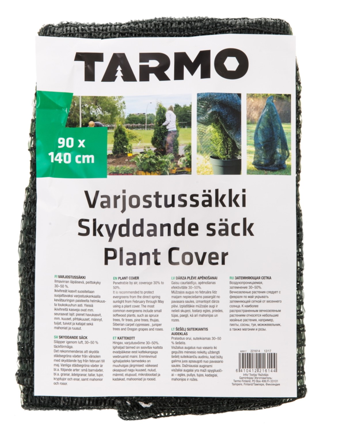 37 g/m². Ilmavirran läpäisevä, 30-50 % peittokyky. UV-takuusuojattu. Varjostussäkki suojaa ikivihreät kasvit kevätauringon paahteelta.