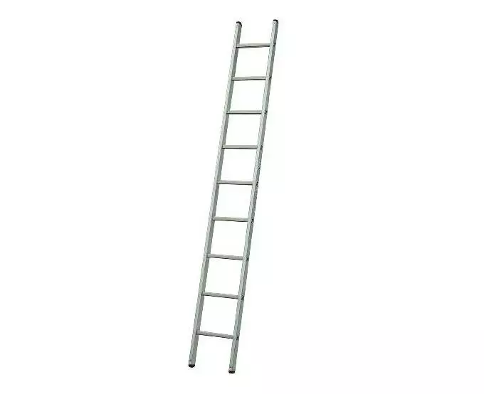 Yksiosainen alumiinitikas 9 askelmaa. Pituus 2427mm, Paino 3,7 kg, EN131 hyväksytty.