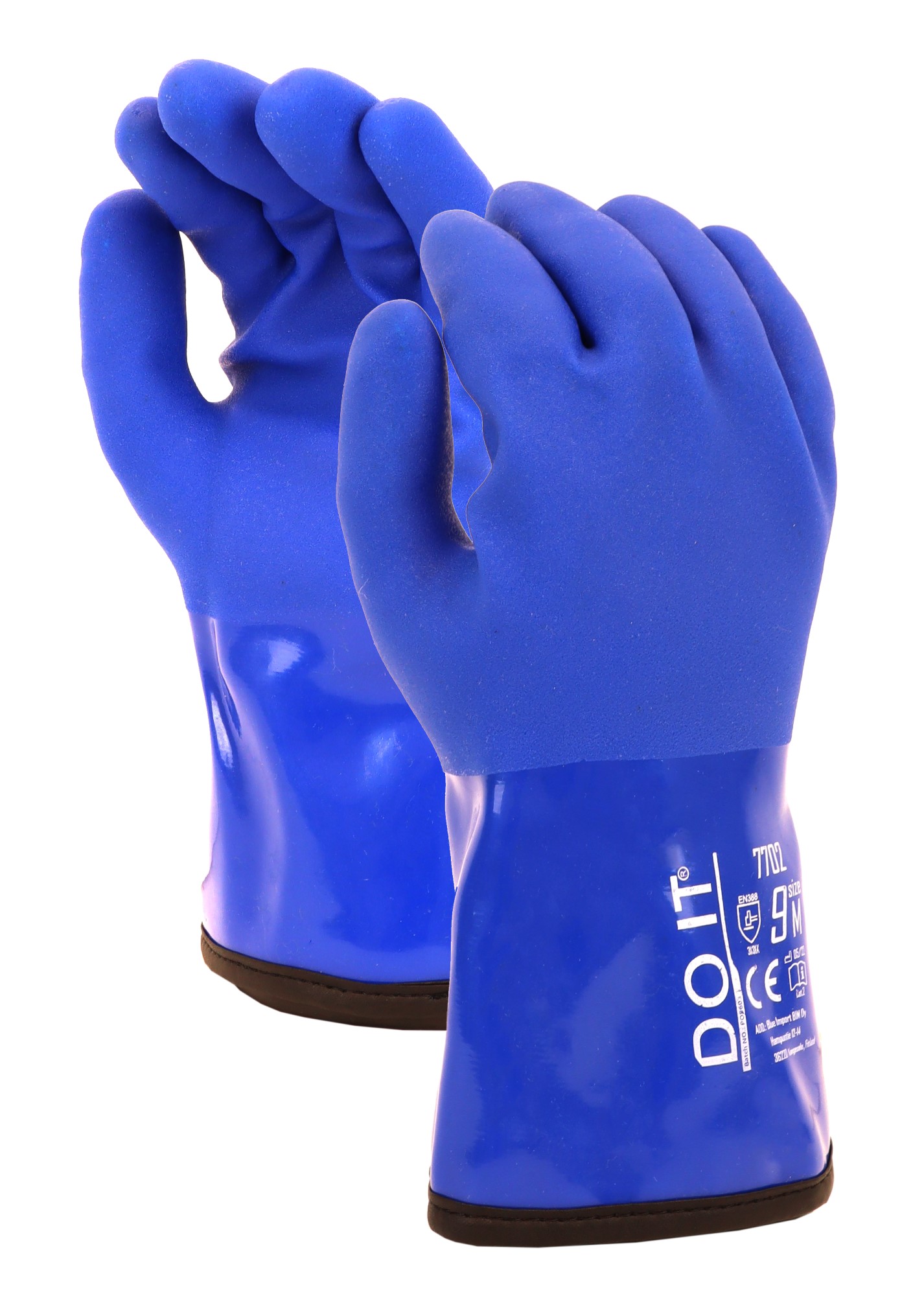 Talvikalastajalle sopiva vedenpitävä PVC-hanska pitkällä varrella.