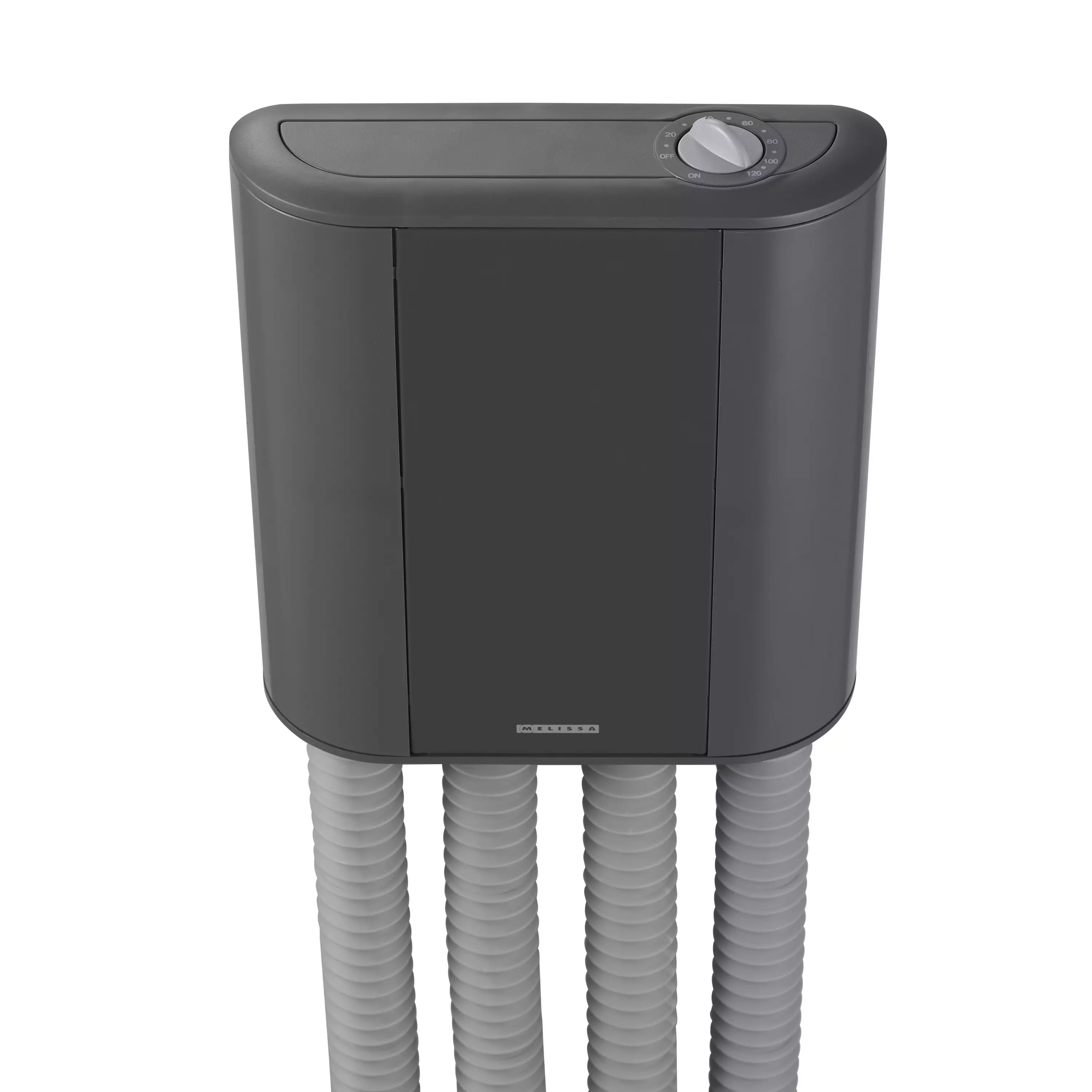 Kenkäkuivaimella voit tehokkaasti kuivata kengät ja saappaat, jotka ovat kastuneet sisältä. Täydellinen lapsiperheille tai niille, jotka ovat aktiivisia ulkona kaikenlaisessa säässä. Märkien kenkien kuivuminen itsestään voi kestää hyvin kauan ja aiheuttaa hajuja ja bakteerien muodostumista. Onneksi tämä voidaan helposti välttää kenkäkuivaimella, joka poistaa kosteuden nopeasti ja varmistaa, että kenkäsi ovat nopeasti taas käyttövalmiit. Tässä 350 W:n kenkäkuivaimessa on tilaa 2 parille kenkiä/saappaita ja se on erittäin helppokäyttöinen. Säädettävän seinäkiinnityksen ansiosta se voidaan ripustaa ylös, jotta se on aina käden ulottuvilla, kun tarvetta ilmenee. Letkut ovat joustavat 80 cm:iin asti ja ne voidaan säätää niin, että ne sopivat sekä kenkiin että saappaisiin. Aseta letku kumpaankin kenkään/saappaisiin, käännä ajastimen nuppia halutun ajan verran ja laite käynnistyy. Se sammuu automaattisesti, kun valitut minuutit ovat kuluneet. Laitteeseen on asennettu lämpösulake, joka suojaa ylikuumenemiselta.