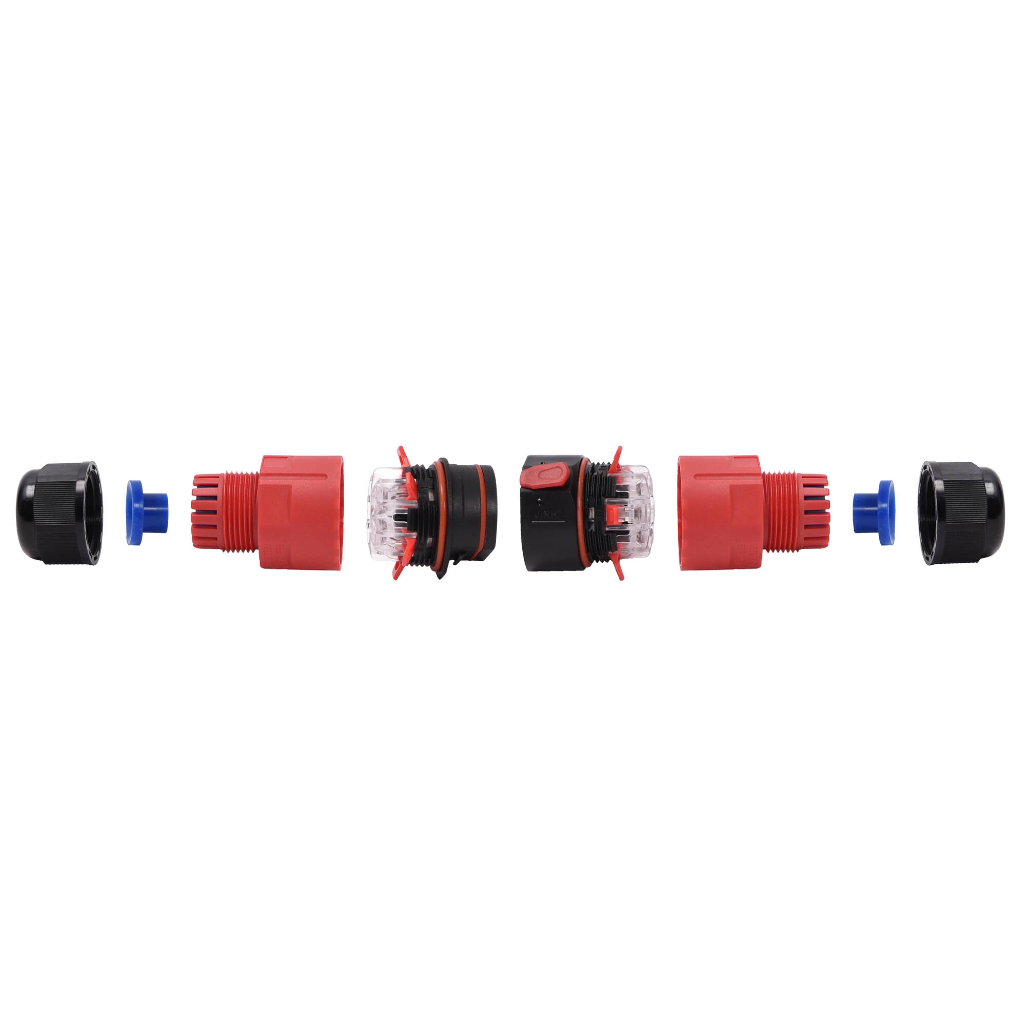 Vesitiivis jatkoliitin kaapeleille. Ruuviton johtimien kiinnitys vipuliittimillä. Vedonpoisto molemmissa päissä. Soveltuu muun muassa ulkovalaisinten, vesipumppujen ja viallisten kaapeleiden korjaamiseen.