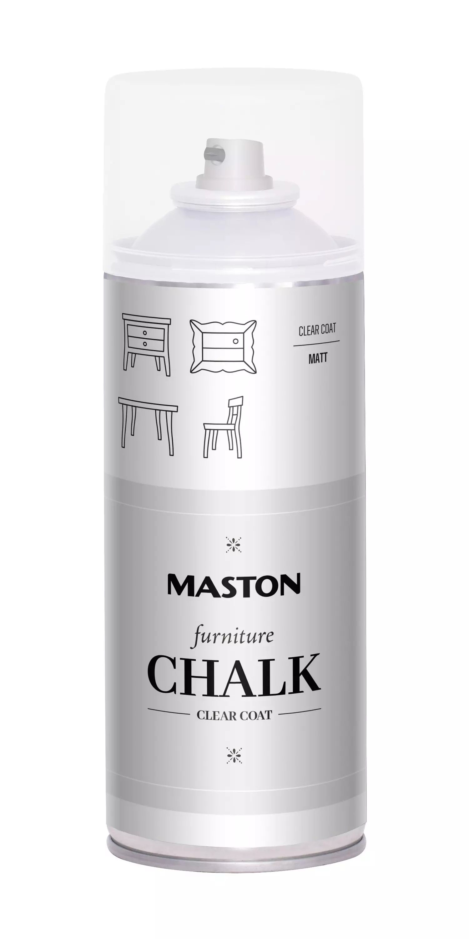 Maston Furniture Chalk Clear Coat matta lakka on suunniteltu erityisesti puukalusteiden pinnan kovuuden ja kulutuskestävyyden parantamiseen. Voidaan käyttää myös muille materiaaleille. Lakalla saa erittäin kovan, läpinäkyvän, silkkisen ja erittäin mattaisen pinnan.