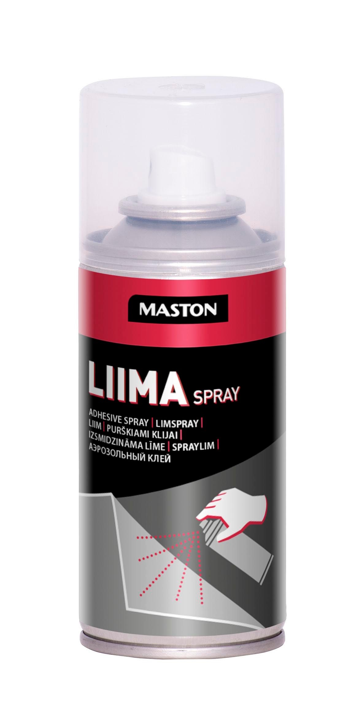 Maston Sprayliima on nopeasti kuivuva sprayliima kevyiden materiaalien kiinnittämiseen. Sopii paperin, pahvin, kankaan, huovan, kumin, lasikuidun, styroxin ja useimpien muovien kiinnittämiseen. Ei sovellu vinyylimuoville eikä vinyylillä päällystellyille pinnoille. Kiinnittyy lähes kaikille sileille ja karheille pinnoille. Ei imeydy liimattavaan pintaan. Tuote on lähes väritön. Hylkii vettä.