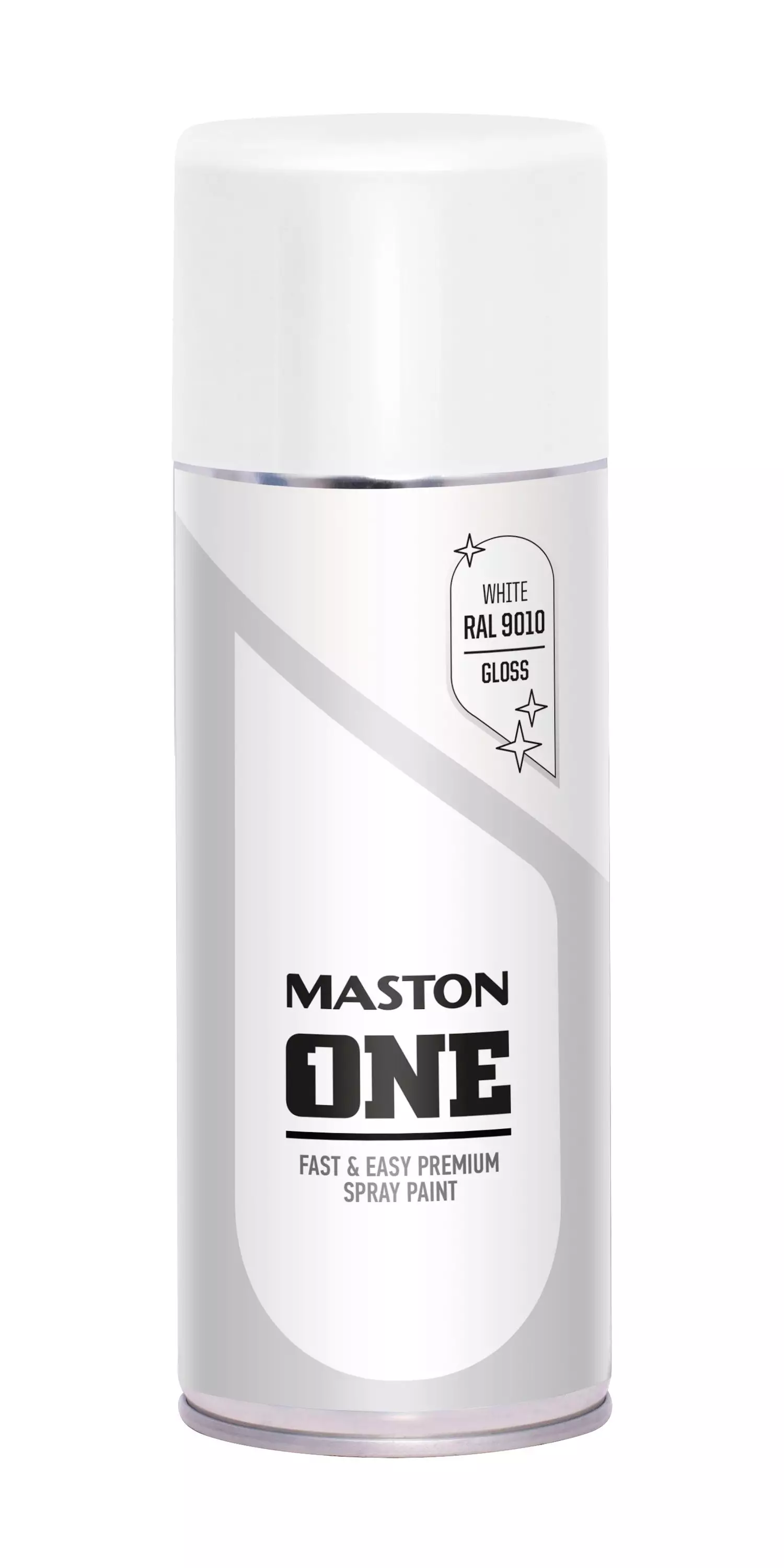 Maston One® spraymaali – tekee maalauksesta helppoa ja nopeaa. Maston One® akryylimaali soveltuu käytännössä kaikille pinnoille, sisälle ja ulos. Maston One® -maalisarjassa kaikki mitä tarvitset, pohjamaalit, pintamaalit jos lakat kaikissa kiiltoisuuksissa sekä useassa eri värivaihtoedossa. Maalilla on erinomainen tarttuvuus.