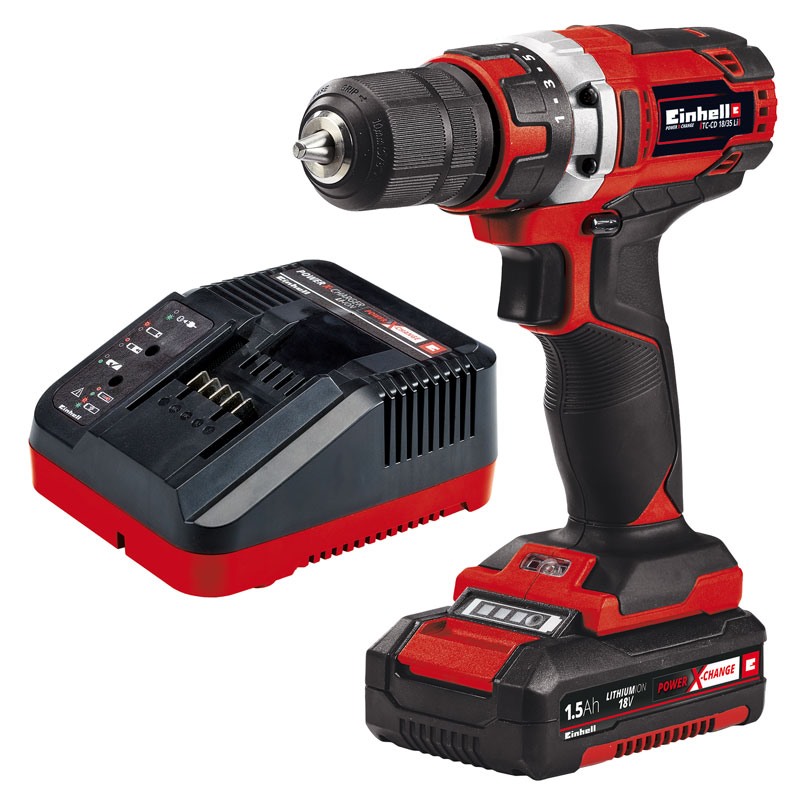 Power X-Change tuoteryhmään kuuluva TC-CD 18/35 Einhell akkuporakone ns. joka kodin peruskone ruuvauksiin ja porauksiin. Akkuporakoneessa on elektroninen kierrosnopeudensäätö ja led-valo. Toimitus sis. 18 V 1,5 Ah PXC-akun ja 1 h laturin.