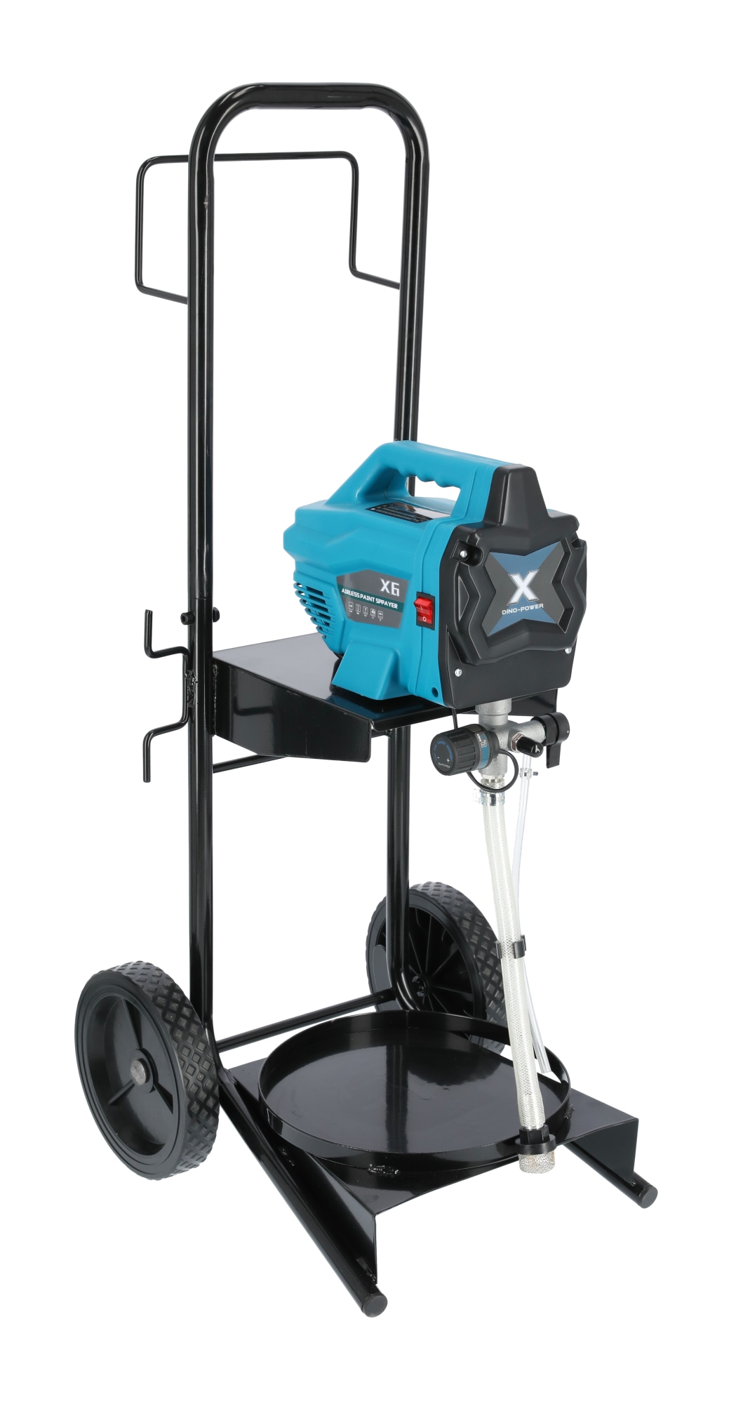 Dino-Powerin laadukas korkeapainemaaliruisku soveltuu hyvin pieniin ja keskikokoisiin maalausurakoihin. Maaliruisku on varustettu kätevällä kuljetuskärryllä, joka helpottaa laitteen ja maaliastian siirtämistä työmaalla. Kärryyn on helppo kiinnittää 9-18 litran maaliastia pantakiinnityksellä. Kärryssä on myös teline korkeapaineletkulle. 7,5 metriä pitkän korkeapaineletkun ansiosta maalausasento on ergonominen.
