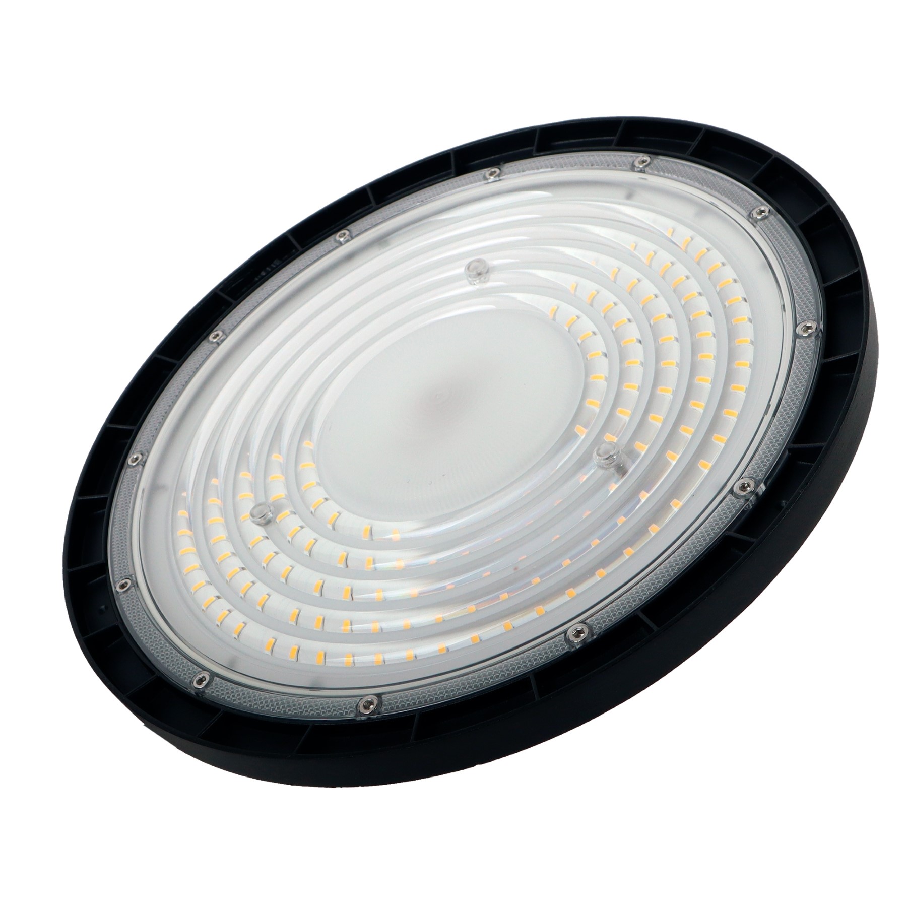 Hallivalaisin korkeisiin tiloihin esimerkiksi varastoihin. AC230V/50Hz, 150W 15000lm, 100lm/W 4000K, IP44. Materiaalit: Runko: Alumiinia, Kupu: Muovia. Väri: Musta. 2m kumikaapeli + suko pistotulppa. Valonjako 120-astetta. Koko: ⌀320mm