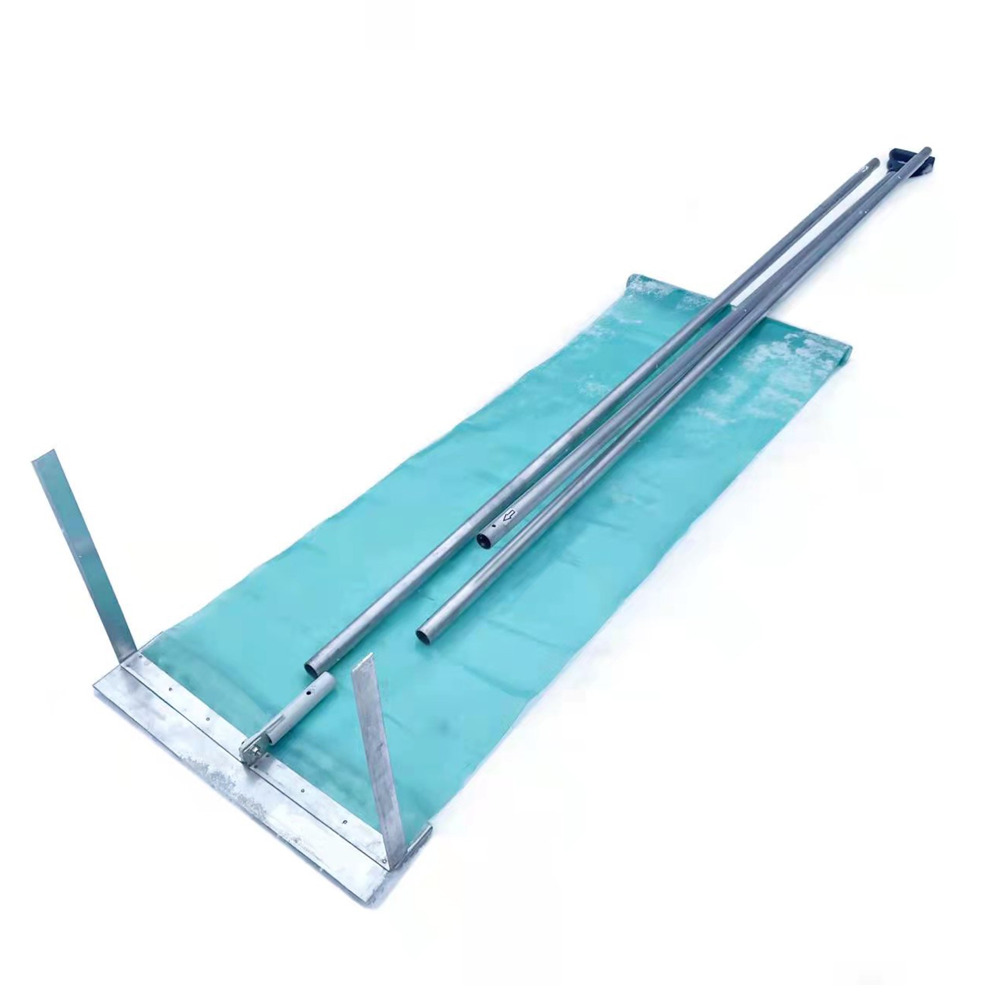 Kokoa Dropperi lumenpudottimen varsi ja liitä se terään siten, että terän reuna mistä liukumuovi lähtee osoittamaan varteen. Kiristä osat huolellisesti. Liitä halkaisuterä varteen. Aloita lumenpudotus pieninä siivuina, mikäli lunta on paksulti katolla. Työnnä terä katolla olevaan lumivaippaan tasaisesti. Mikäli terä ei uppoa lumivaippaan ota pienempi siivu. Ota ensin koko katon leveydeltä pieni kerros ja sitten toista se. Mikäli terä uppoaa lumivaippaan hyvin, voit myös ottaa suurempia kerroksia kerralla.