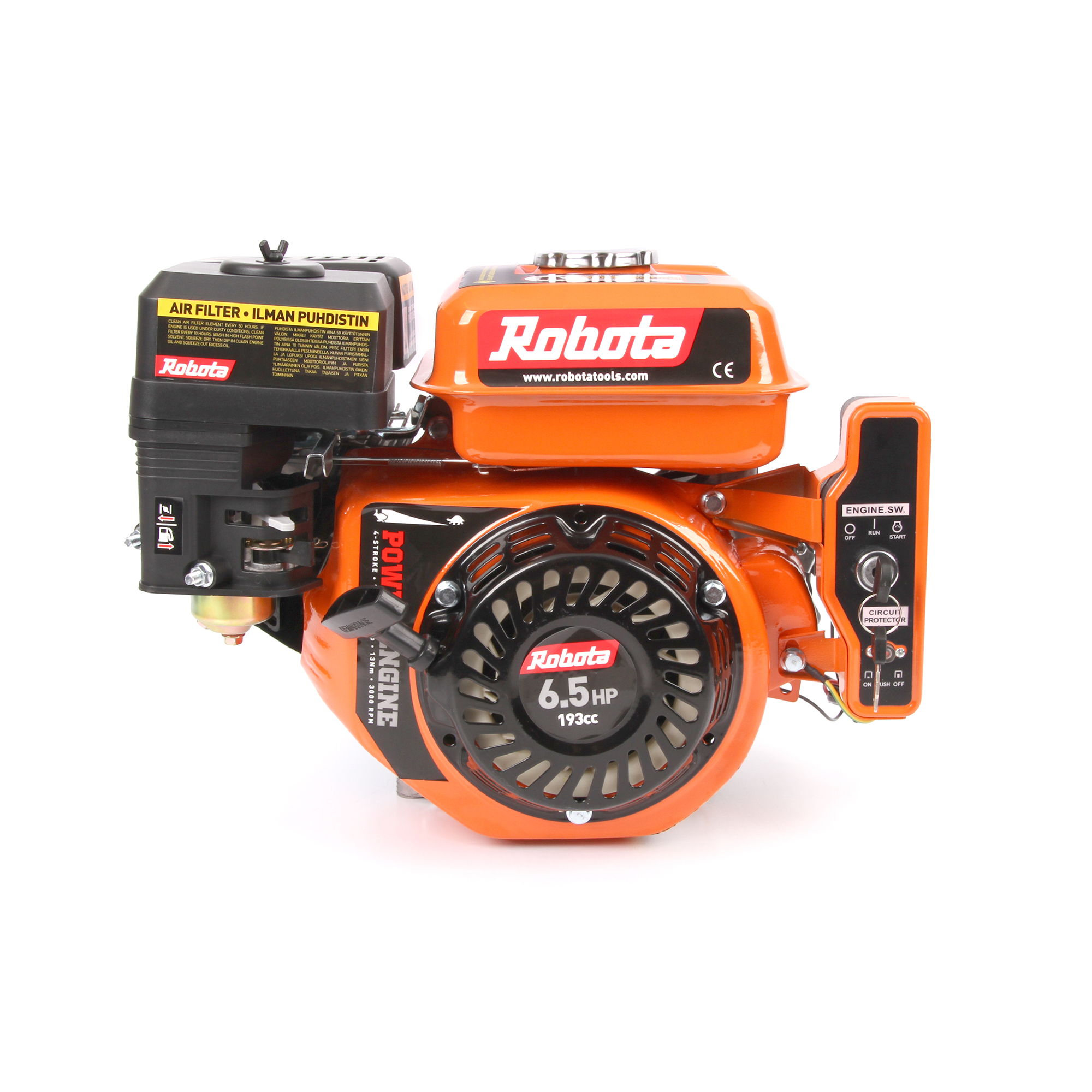 Luotettava ja helposti käynnistyvä moottori projekteihin ja korvaavaksi koneeksi moniin laitteisiin. Vaaka-akselilla varustetussa moottorissa mukana irroitettava kiilahihnapyörä. Huom. Lisää moottoriöljy ennen käynnistystä. Pakkauksen sisältö: Moottori, ohjekirja, tulppa-avain, virtalukko, hihnapyörä 54mm kahdella kiilahihnauralla.