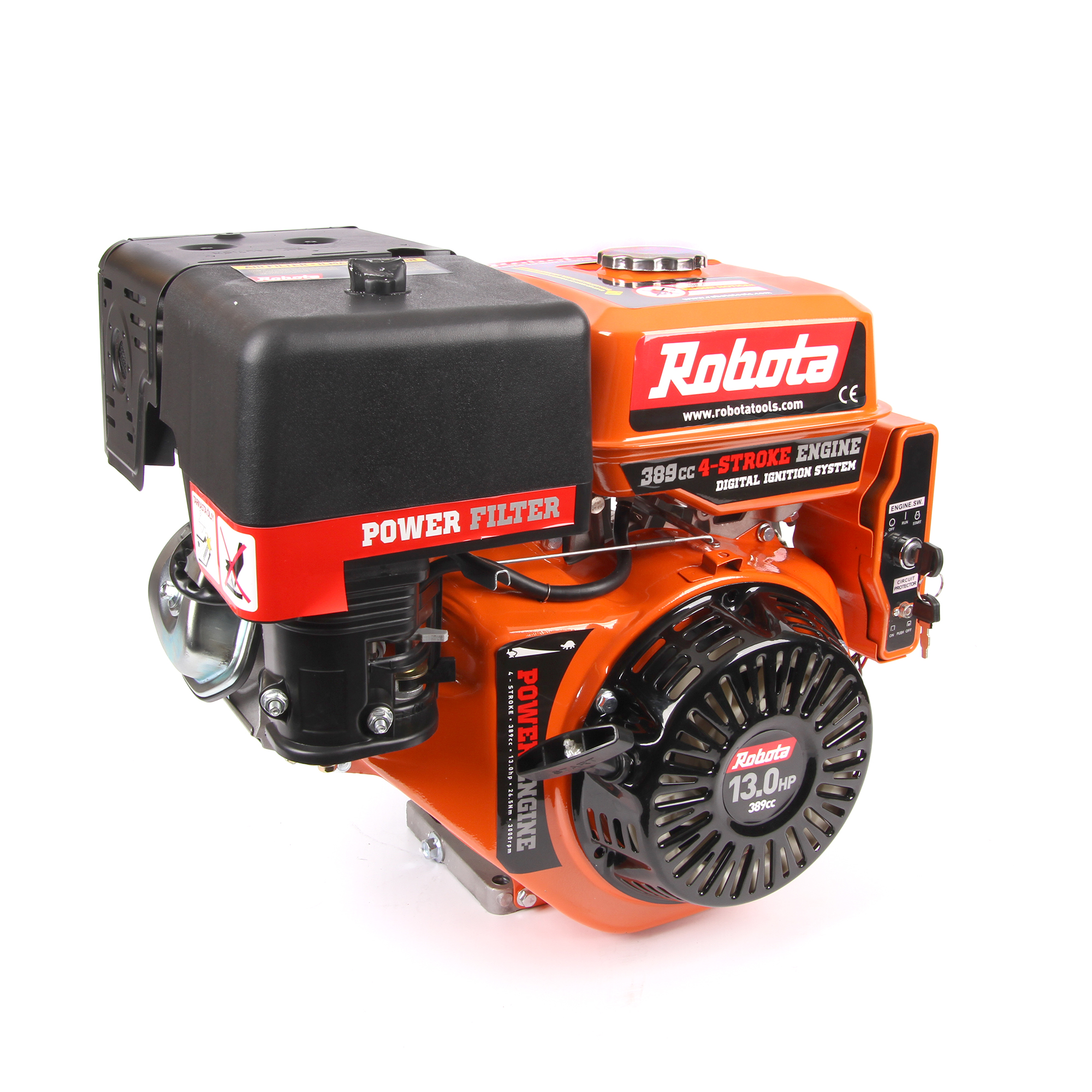 Luotettava ja helposti käynnistyvä moottori projekteihin ja korvaavaksi koneeksi moniin laitteisiin. Vaaka-akselilla varustetussa moottorissa mukana irroitettava kiilahihnapyörä. Huom. Lisää moottoriöljy ennen käynnistystä. Pakkauksen sisältö: Moottori, ohjekirja, tulppa-avain, virtalukko, hihnapyörä 54mm kahdella kiilahihnauralla.