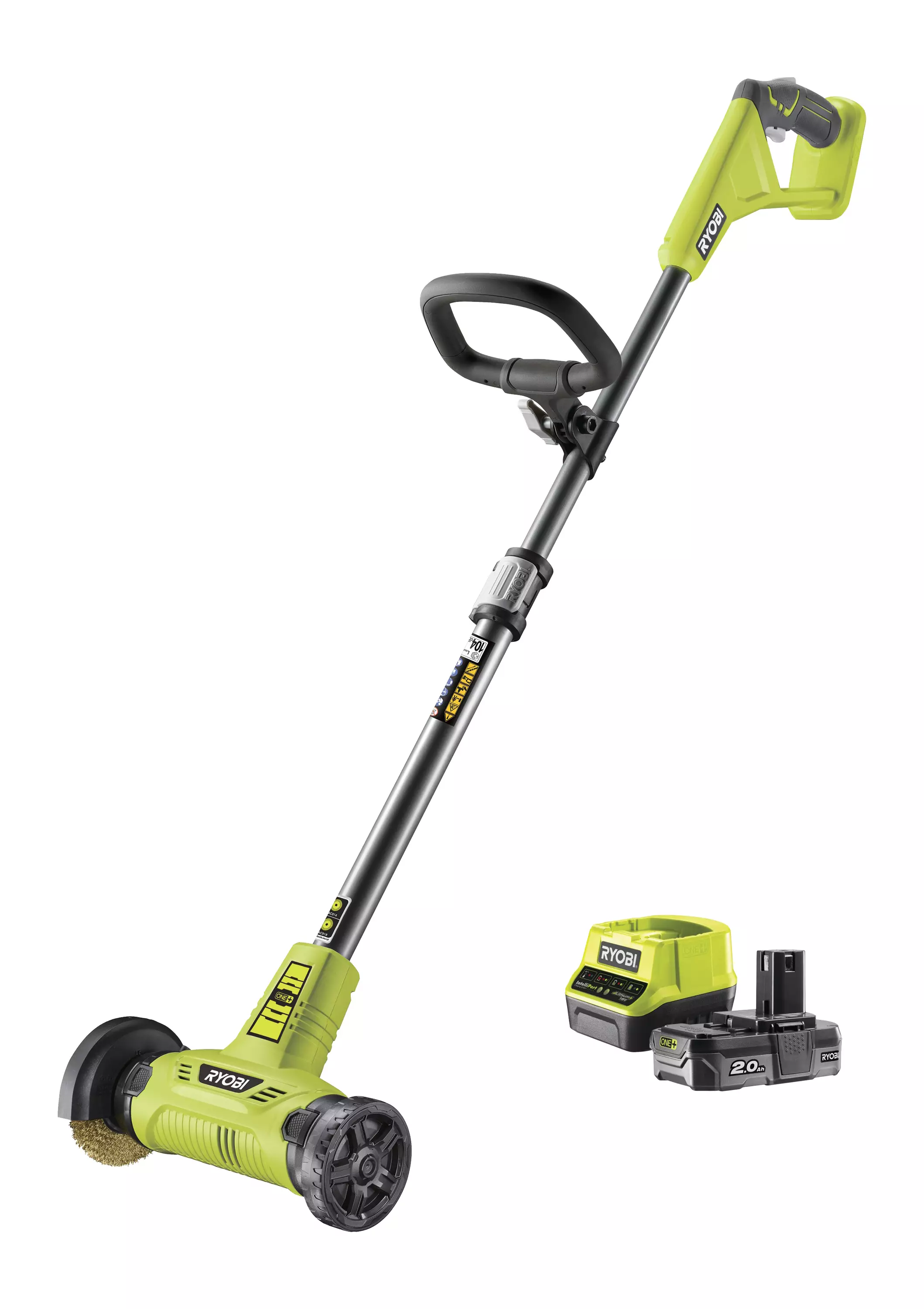 Kestävä 18V Ryobi saumaharja teräsharjalla, malli RY18PCA-120, tekee saumojen puhdistamisesta vaivatonta. Ihanteellinen kovien pintojen puhdistukseen ja huoltoon.