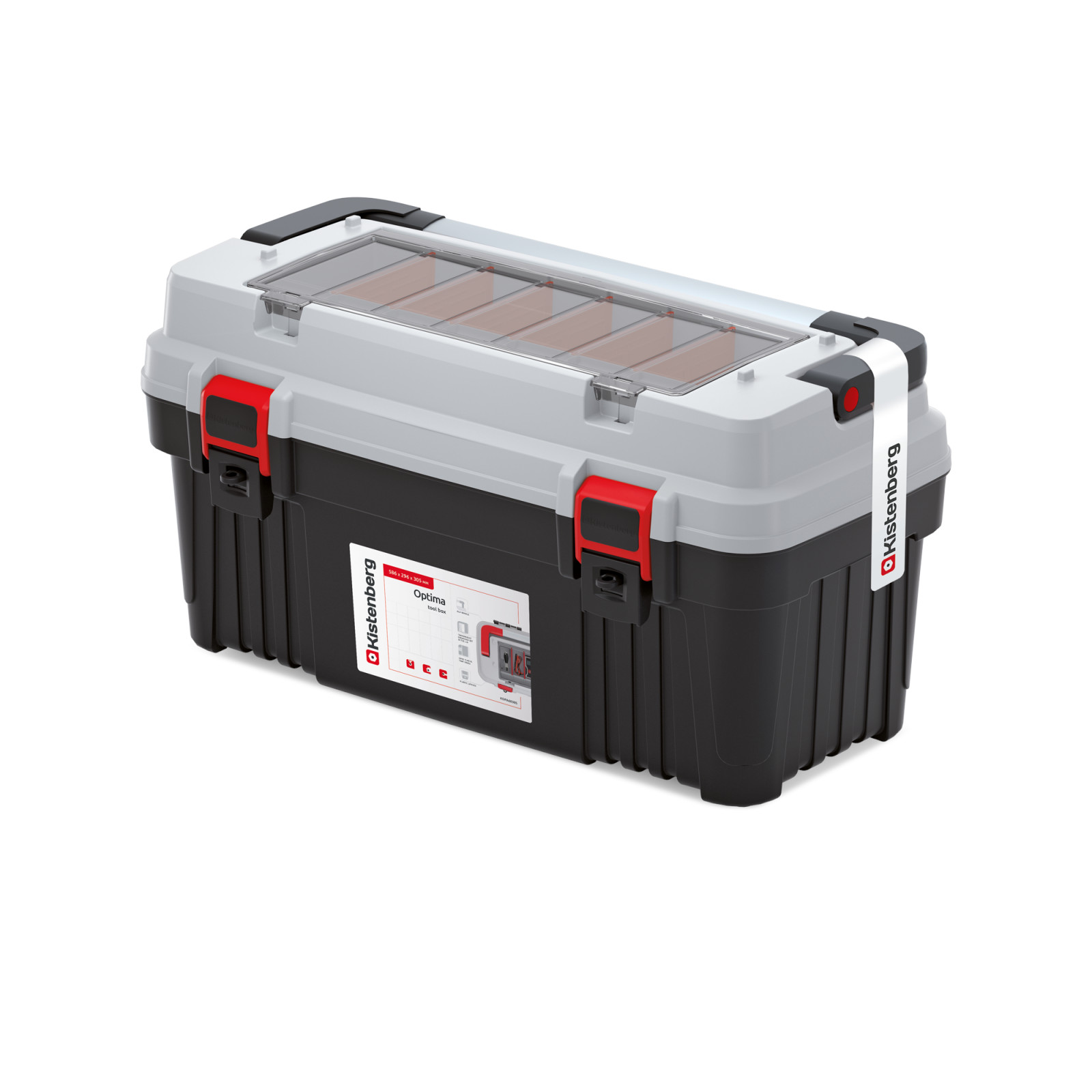 - Suuri työkalulaatikko osastoilla, joissa on kestävä polykarbonaattikansi