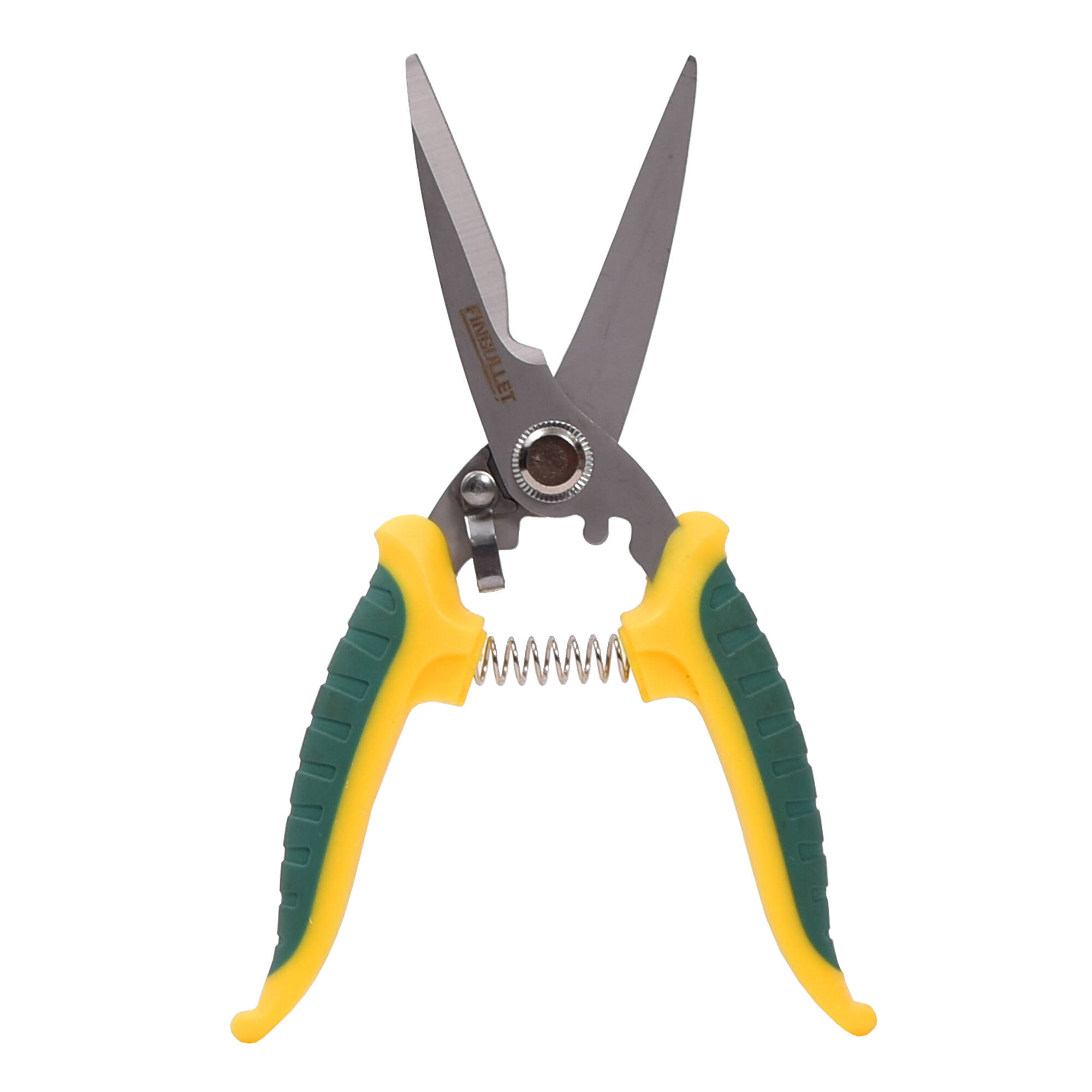 Finbulletin ohileikkaavien yleissaksien terät sivuuttavat toisensa ja ne sopivat monenlaiseen leikkaamiseen. Saksien terät ovat ruostumatonta terästä ja muoviset kädensijat helpottavat leikkaamista.