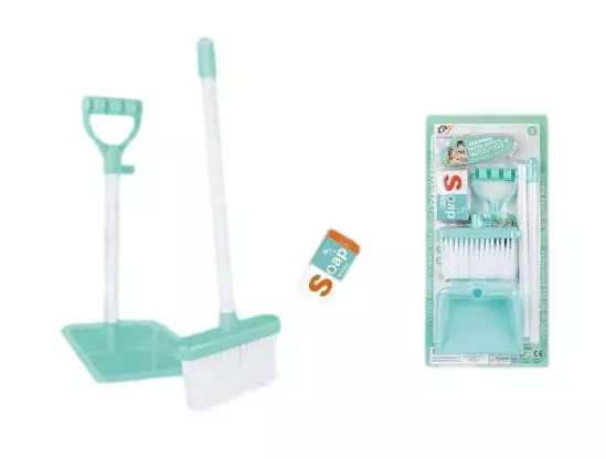 Täydellinen siivoussetti pikku siistijille! Harja, rikkalapio sekä pesuainepurkit. Harjan varren pituus 57 cm. Ikäsuositus 3+ vuotta.