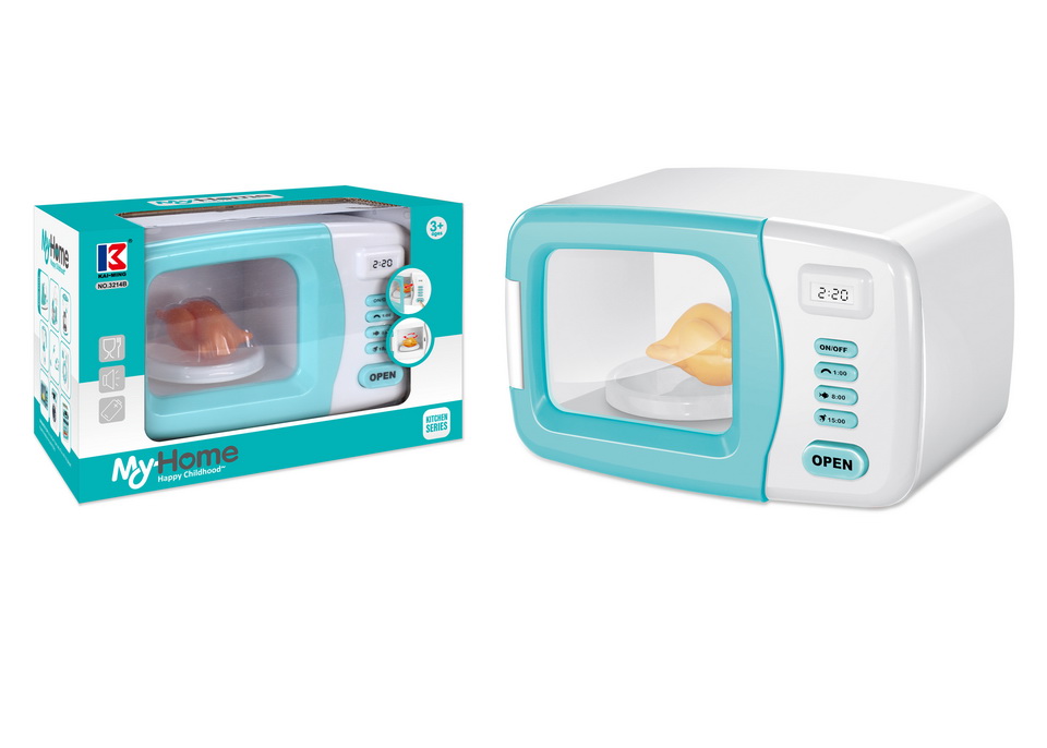 Paristokäyttöinen mikro keittiöleikkeihin. Valolla ja avautuvalla ovella.