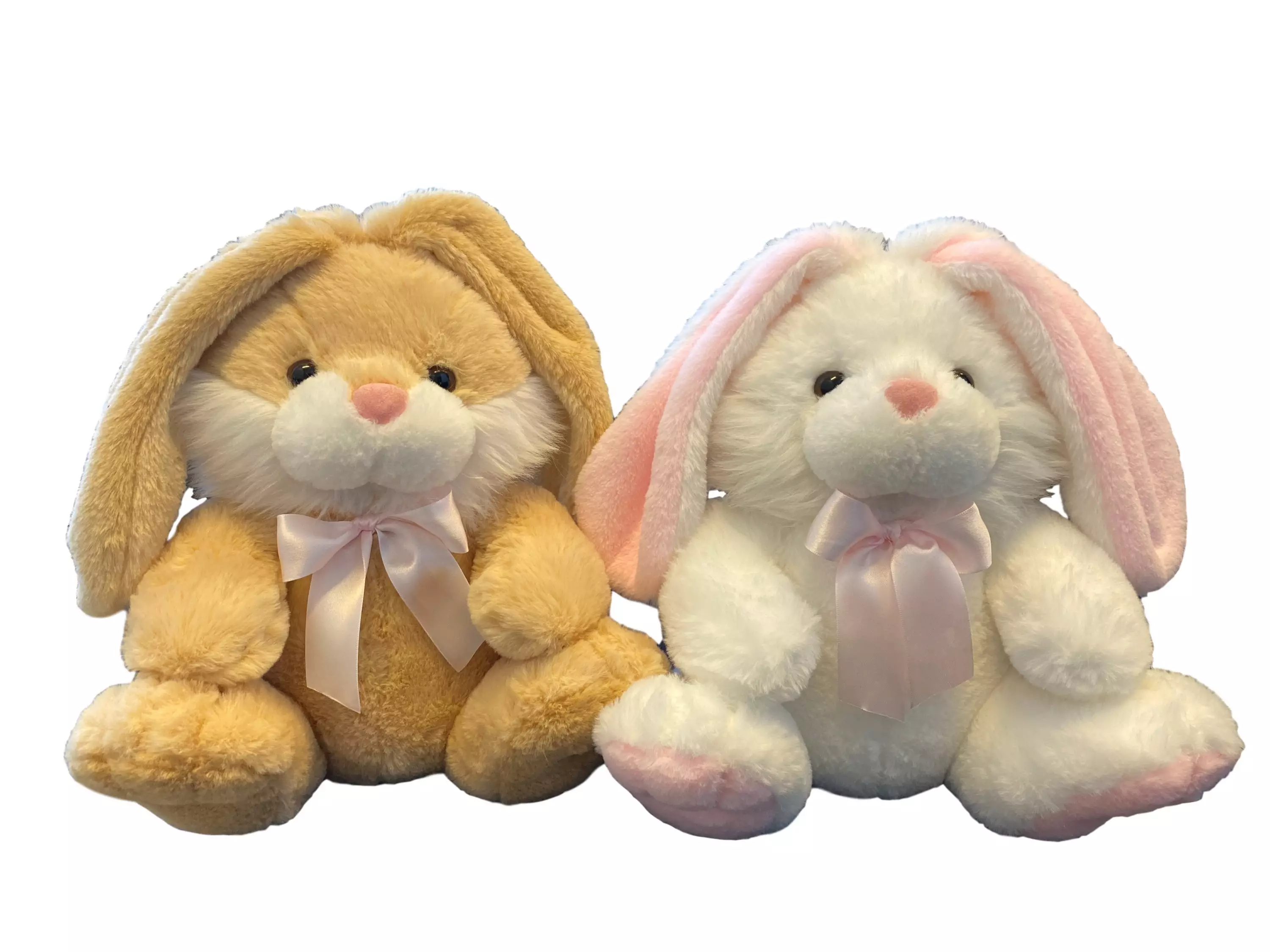 Pehmeä pupu luppakorvilla leikkeihin tai unikaveriksi. Saatavilla ruskeana tai valkoisena. Ikäsuositus 2+ vuotta. Täydellinen lahja lapselle