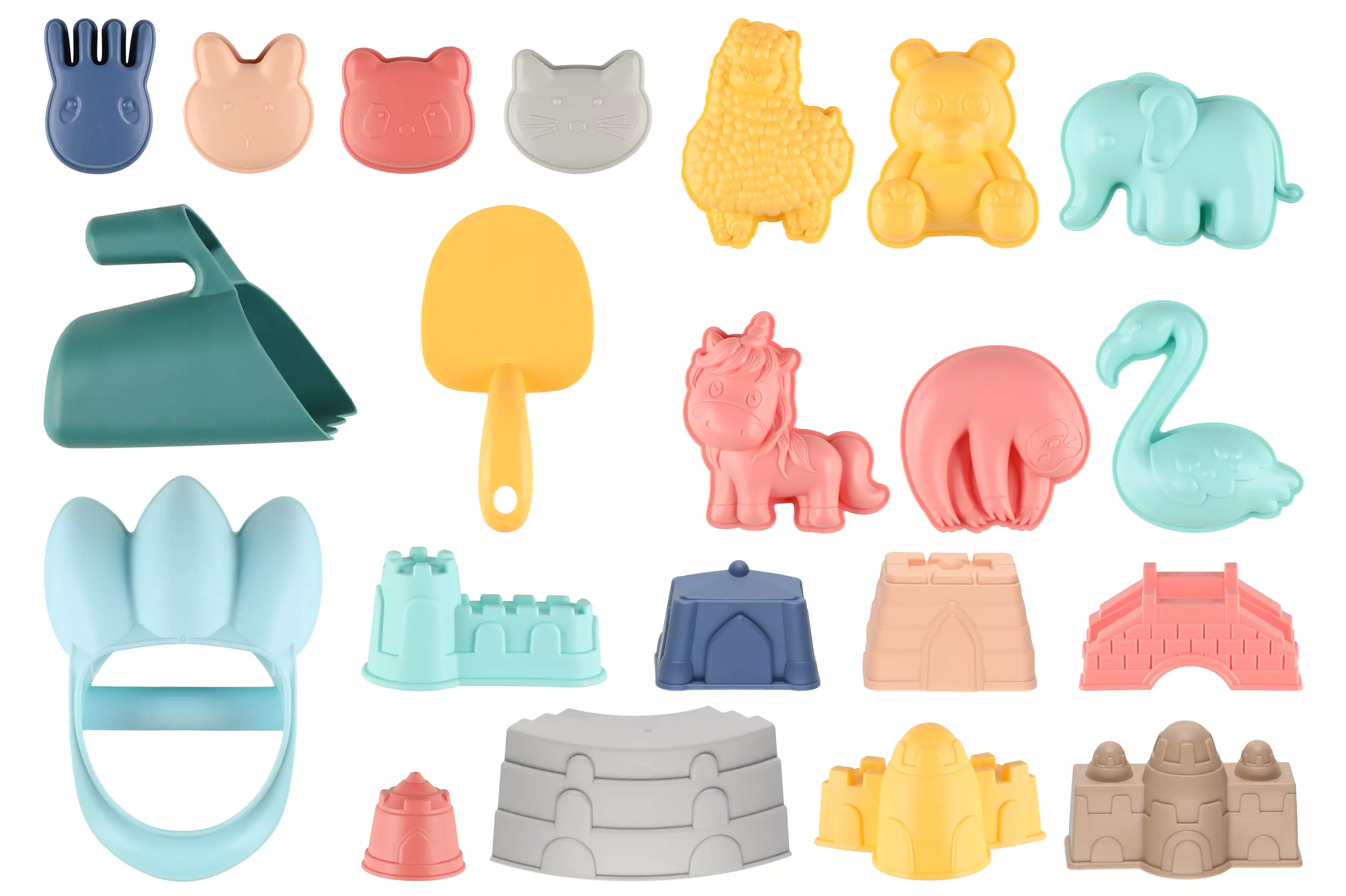 Upeassa hiekkalelusetissä on peräti 20 osaa. Setti sisältää mm. suloisia eläinmuotteja, kuten yksisarvinen, flamingo ja laiskiainen, hiekkalinnamuotteja ja paljon muita ihanuuksia. Ikäsuositus 18 kk+.