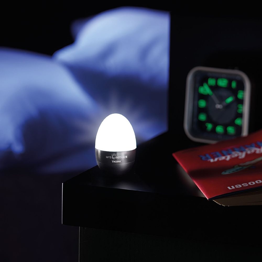 Huippuhieno Troika Eggtivate yövalo syttyy kun napautat sitä hellästi pöytää vasten! Valo sammuu itsestään kuuden minuutin päästä, tai voit sammuttaa sen halutessasi aiemminkin napauttamalla sitä uudestaan.